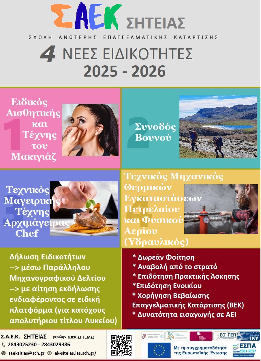 Σας ενημερώνουμε ότι η διαδικασία αξιολόγησης για το εξάμηνο 2025Α, η οποία θα πραγματοποιηθεί μέσω της σχετικής πλατφόρμας (https://axiologisi-iek.minedu.gov.gr/), εκκινεί σήμερα Πέμπτη 19 Ιουνίου 2025 και λήγει τη Δευτέρα 30 Ιουνίου 2025 (και ώρα 23:59).